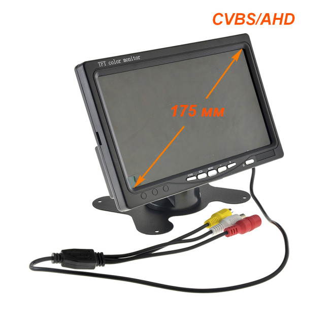Великий монітор з двома відеовходами, для підключення камери заднього огляду в автомобілі.