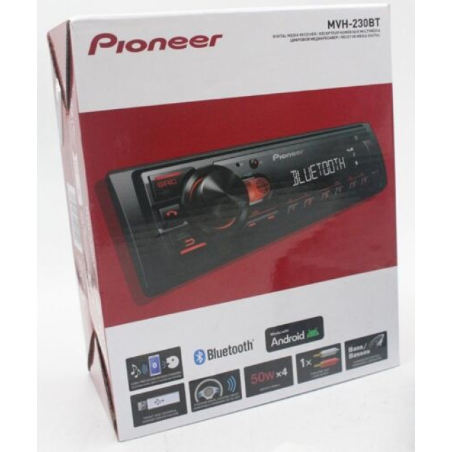 Автомобільна магнітола Pioneer MVH-230BT – це поєднання класичного дизайну та сучасних технологій. Завдяки підсилювачу MOS-FET потужністю 4×50 Вт ви отримуєте чисте та насичене звучання навіть на високій гучності.