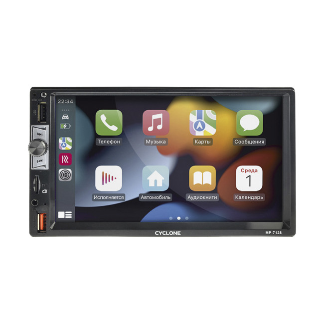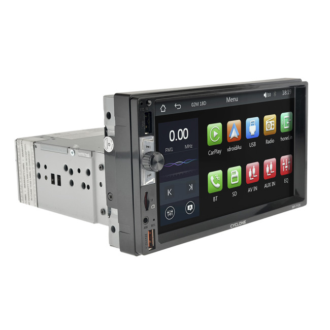 Cyclone MP-7128 — сучасна 2 DIN мультимедійна магнітола з 7-дюймовим сенсорним дисплеєм, яка поєднує зручність, стильний дизайн та багатофункціональність. Пристрій дозволяє слухати улюблену музику з USB-носіїв, карт пам'яті, а також відтворювати відео у популярних форматах.