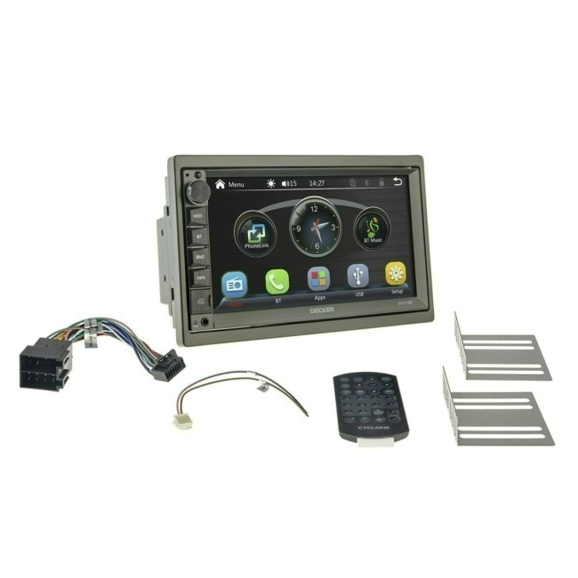 Пристрій призначено для прийому FM радіостанцій, відтворення аудіо, відео, фото з USB та micro SD катрти, а також для розмови (hands free) і відтворення аудіо зі смартфону по Вluetooth.Встановлюється в стандартний монтажний розмір 2DIN, підтримує підключення камери заднього та переднього огляду. Має CarPlay/Android Auto.