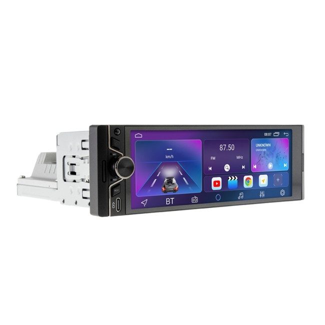 Встановлюється в стандартний монтажний розмір 1DIN, підтримує підключення камери заднього огляду. Має CarPlay/Android Auto