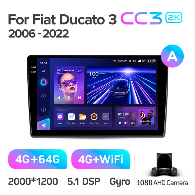 Характеристики Штатна магнітола Teyes CC3 4+64 Gb Fiat Ducato 3 For Peugeot Boxer 2 For Citroen Jumper 2 2006-2022 (A) 9" 2k