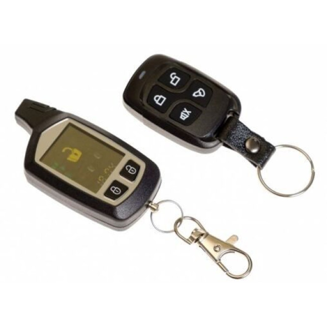 | Комплектація | Основний блок, LCD-брелок з двостороннім зв'язком, Додатковий односторонній брелок, Датчик удару, Світлодіодний індикатор, Кнопка Valet, Проводка для підключення, Інструкція користувача |