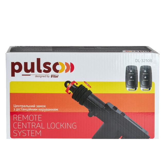 Комплект центрального замку PULSO DL-32108 (8 PIN) з пультом керування – універсальна система дистанційного керування замками дверей автомобіля. Призначений для установки на автомобілі без штатного центрального замку або модернізації існуючої системи. Забезпечує зручне відкриття та закриття дверей за допомогою брелоків-пультів.
