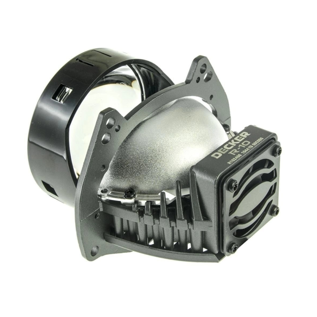 Bi-LED лінза Decker R-10 діаметром 3,0" з 2-ма LED чіпами і 2-ма відбивачами забезпечує надширокий і рівномірний розподіл світла в режимі ближнього світла, що підвищує безпеку руху та комфорт водія.