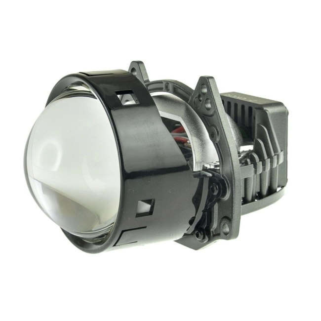 Лінза оснащена механічною шторкою, що забезпечує перемикання між ближнім та далеким світлом. Мінімальні розміри радіатора та вентилятора з вбудованим блоком живлення дозволяють легко встановити лінзу в будь-яку фару.