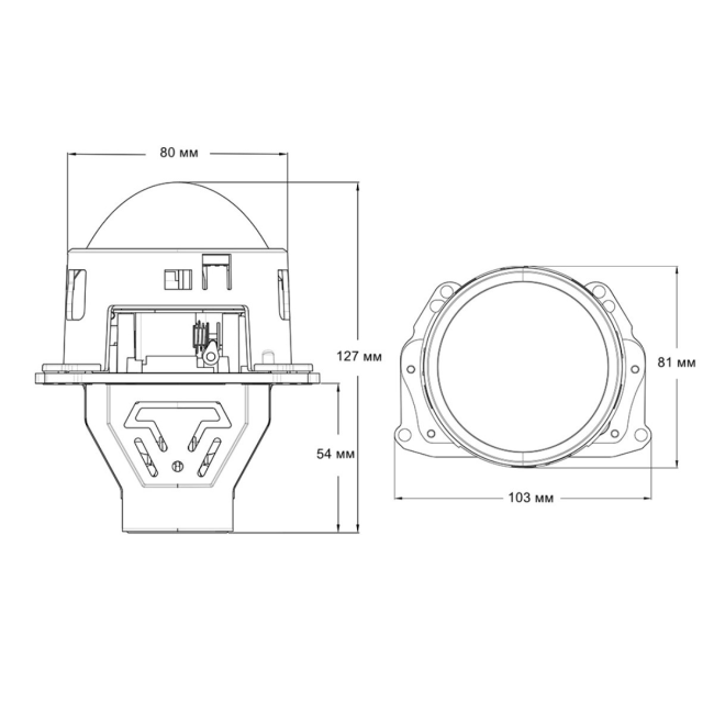 - Встановлюється замість штатної лінзи (стандарт кріплення Hella3) або цоколь H4, H7, HB3, HB4 (кріплення та перехідні кільця в комплекті)